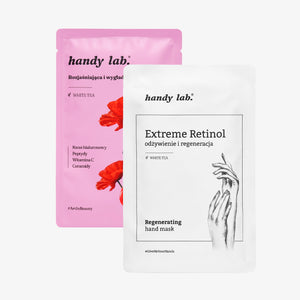Zestaw Double Trouble powstał z myślą o przesuszonej, wymagającej regeneracji skórze dłoni. To duet masek o uzupełniającym działaniu – rozjaśniającym i regenerującym – które zapewniają kompleksową pielęgnację w formie wygodnych rękawic. Dzięki bogactwu składników aktywnych i technologii smartphone-friendly możesz zadbać o dłonie bez wychodzenia z domu i... bez przerywania scrollowania.